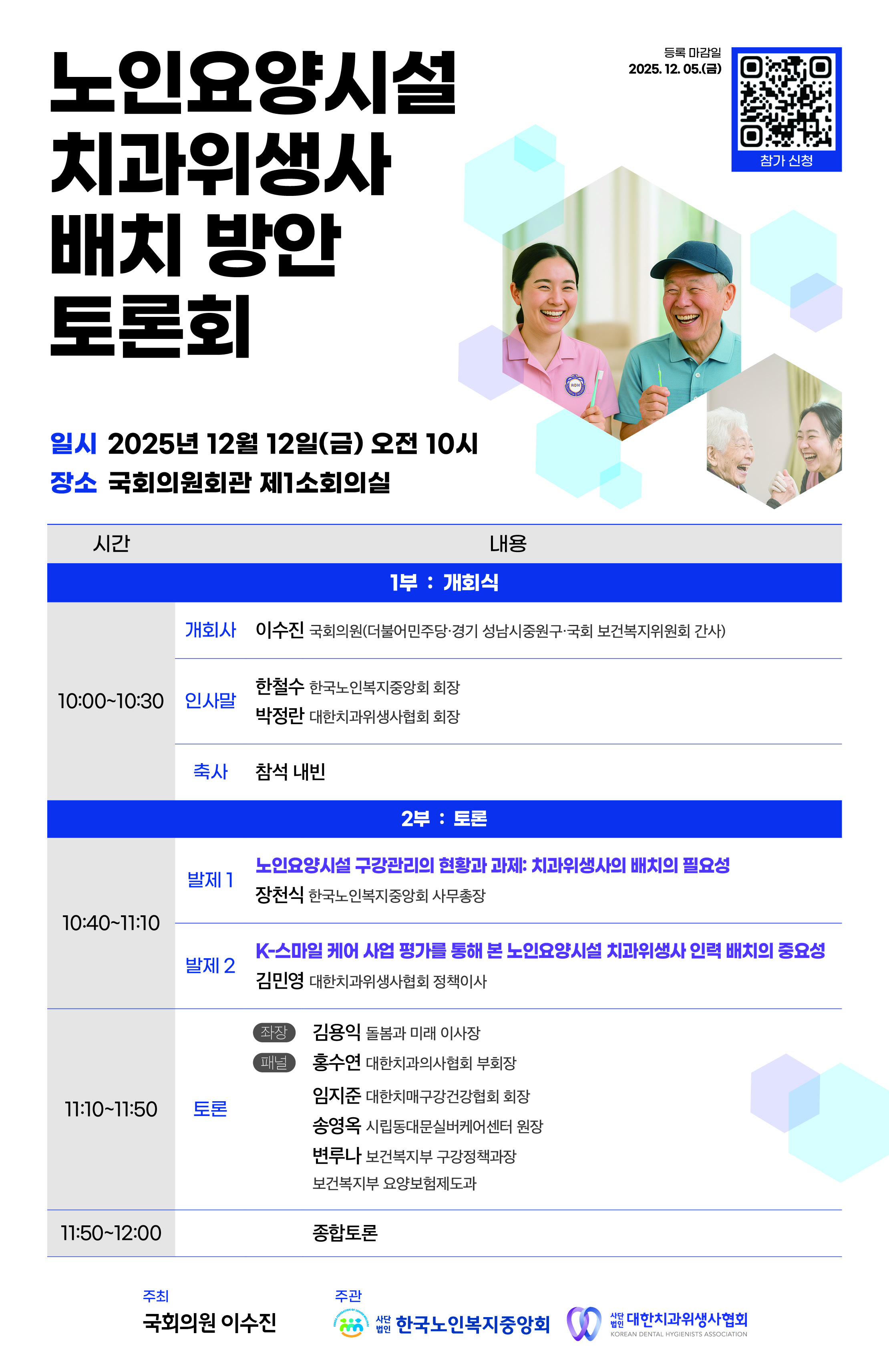 “노인요양시설 치과위생사 배치 방안” 토론회 개최 안내